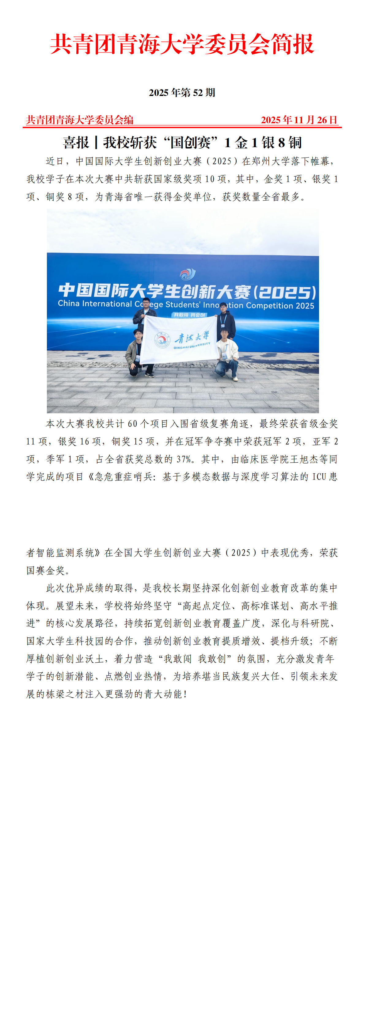 喜报「我校斩获“国创赛”1金1银8铜