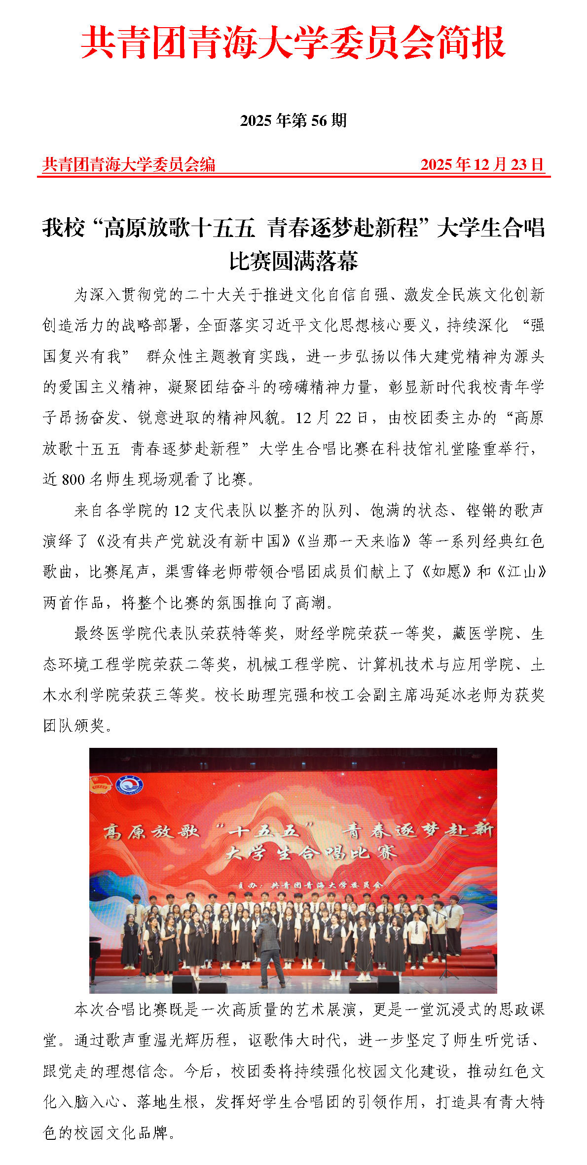 我校“高原放歌十五五 青春逐梦赴新程”大学生合唱比赛圆满落幕