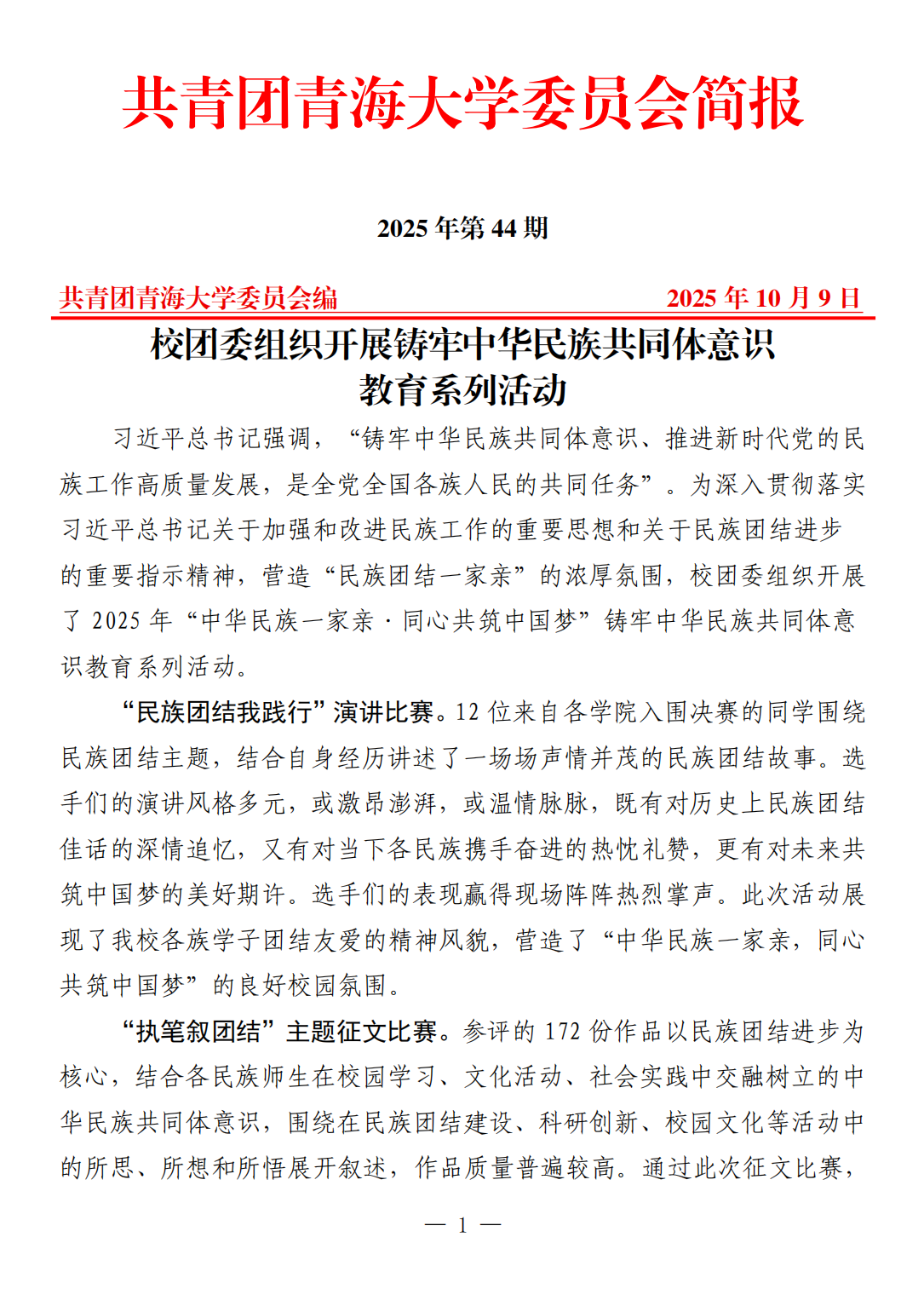 校团委组织开展铸牢中华民族共同体意识教育系列活动